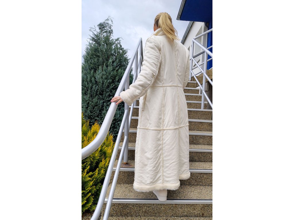 Rozměry kabátu velikosti L: obvod přes prsy - 102 cm, pas - 88 cm, boky - 110 cm, délka ramene - 14 cm, délka rukávu od ramene: 63 cm, zadní délka 135 cm