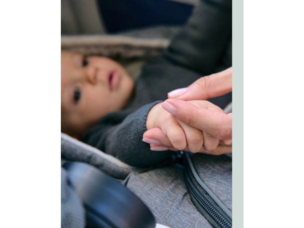- Protiskluzový materiál na zadním díle udržuje správnou polohu v kočárku