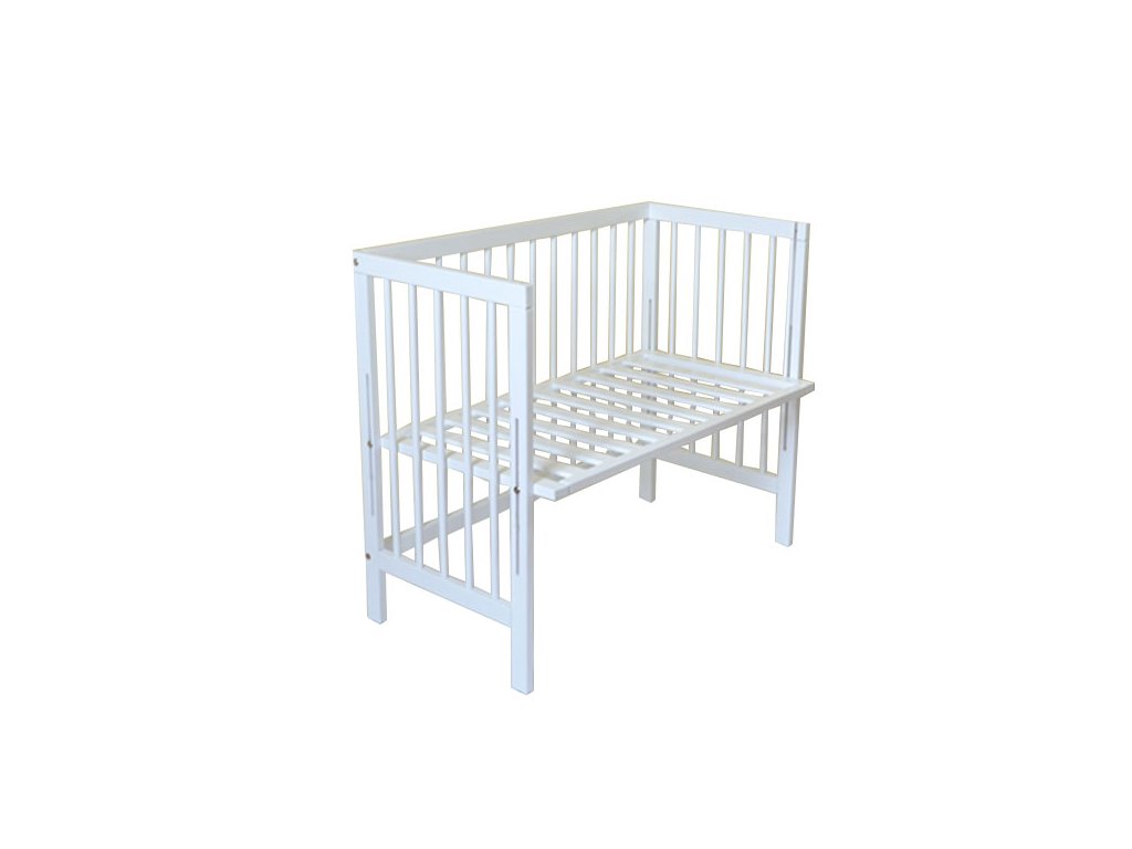 Přístavná postýlka s výškovým nastavením roštu pasuje ke každé posteli. Je vyrobena z lipového dřeva, bíle lakovaná, s možností dokoupení 4. bočnice. Později ji využijete jako dětské sofa nebo místo na hračky.