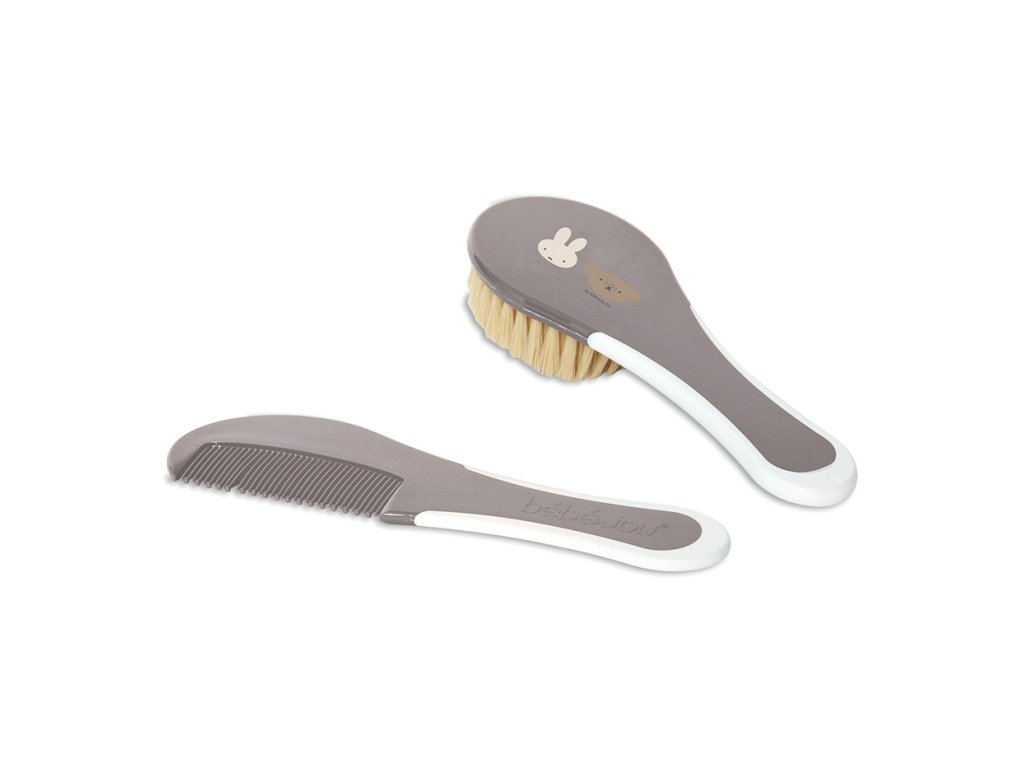 Praktická sada pro péči o vlásky novorozenců a miminek. Na rozdíl od jiných kartáčů vyrobených z tvrdého silonu, kartáč od bébé-jou má měkký přírodní vlas nedráždící jemnou pokožku dětské hlavičky. Hřeben je ergonomicky tvarován a díky zakulaceným špičkám zubů nemůže poškrábat při česání. Snadno se udržuje v čistotě umytím v teplé vodě s trochou mýdla.