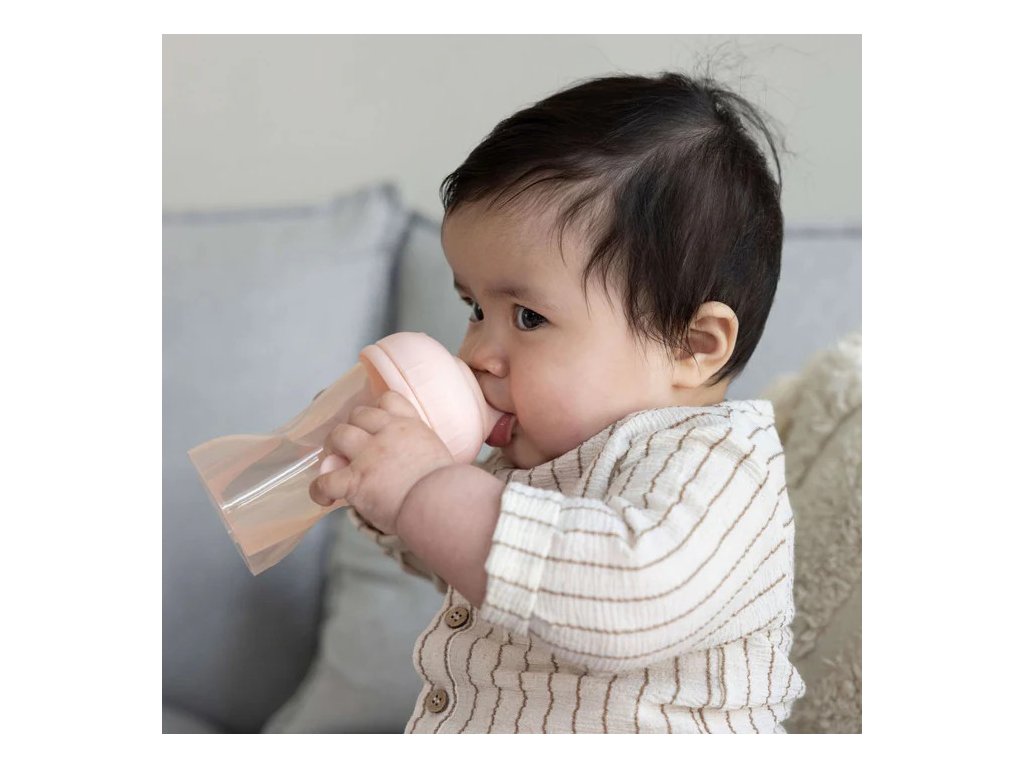- Unikátní tvar, rozdílný vně a uvnitř, zajišťuje optimální polohu hlavičky při pití.