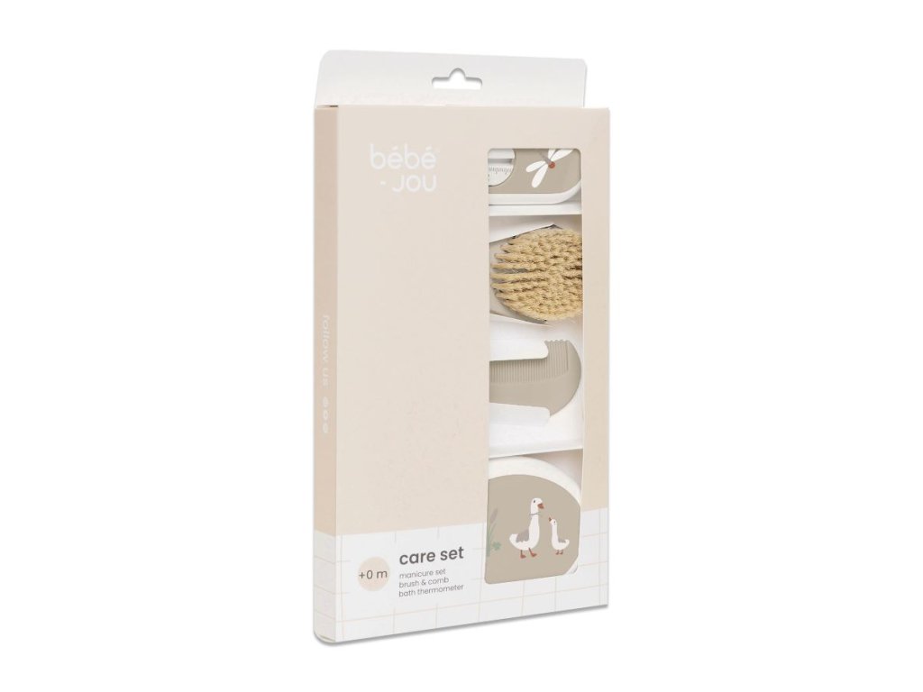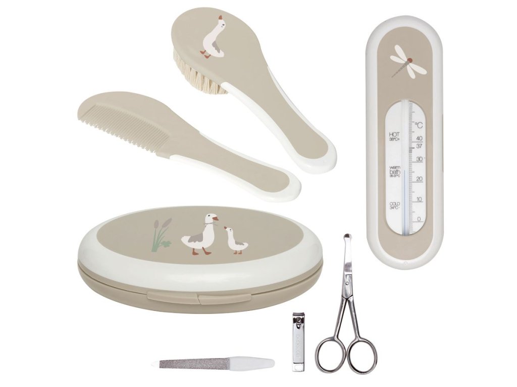 Roztomilá čtyřdílná dárková sada potěší novopečené rodiče hned několikrát. Poprvé, když ji obdrží a pak pokaždé, když ji budou používat. Není to jenom krásný dárek, ale také velice praktická, krásně zabalená sada. Obsahuje koupací teploměr, manikůru, hřeben a kartáč.
