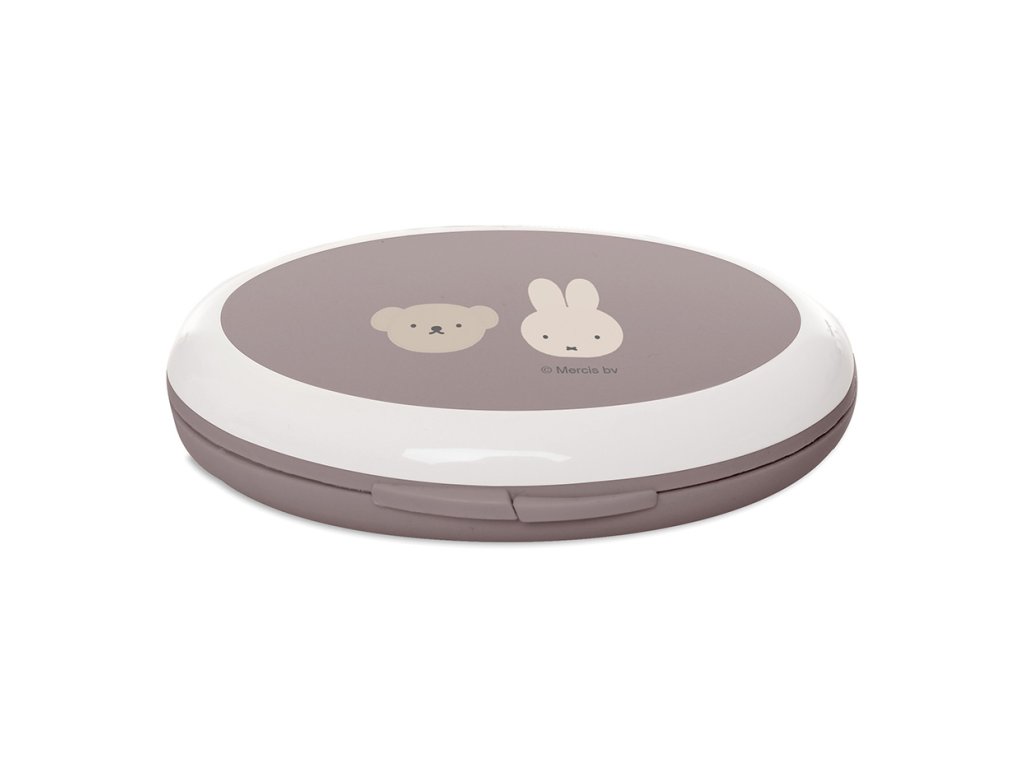 Obsahuje nůžky se zakulacenými konci, pilníček na nehty a také kleštičky na nehty. Vše je vyrobeno z nerezavějící ušlechtilé oceli. Krabička s výrazným motivem na víčku chrání před prachem a pomáhá udržovat manikúru v čistotě. Ale i přesto před každým použitím jednotlivé nástroje pečlivě očistěte a u novorozenců i desinfikujte roztokem lihu.
