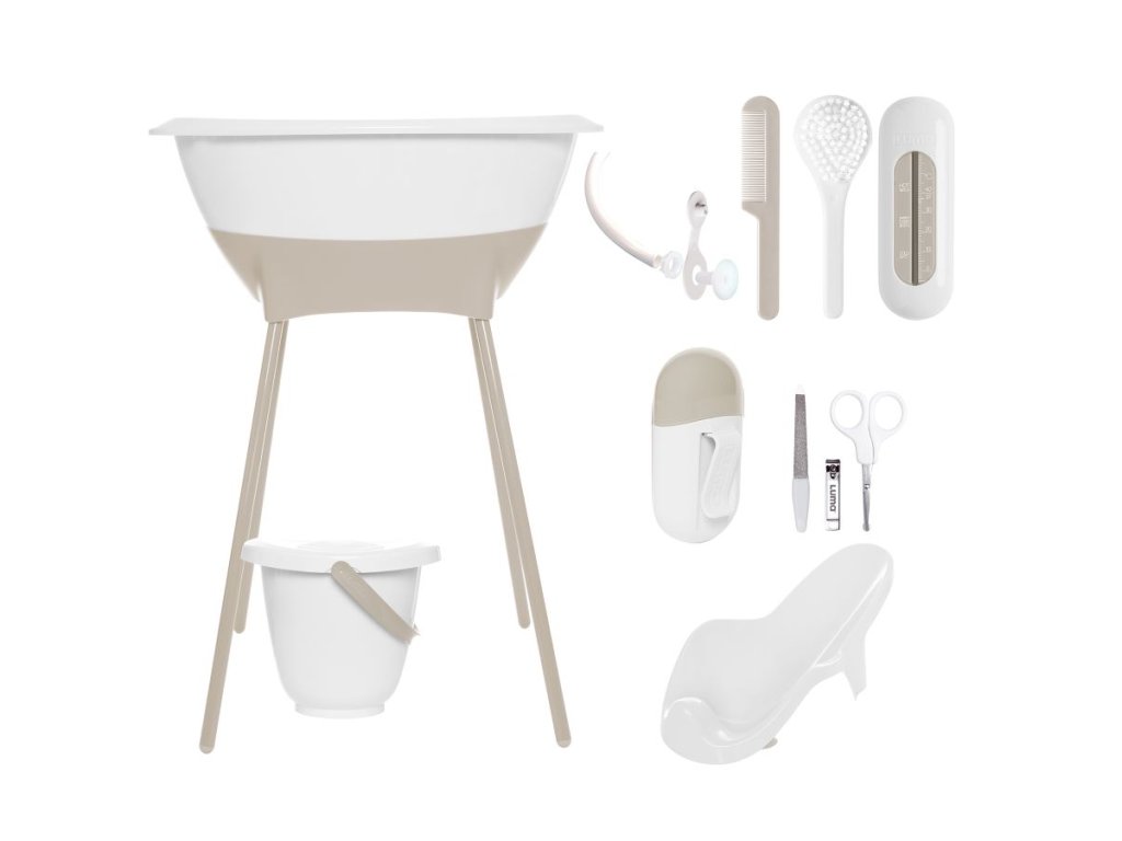 Máte rádi krásné moderní věci a nechcete za ně utratit příliš mnoho peněz? Tak si vyberte LUMU. Sada všech výrobků trendové holandské značky LUMA babycare, které budete ke koupání potřebovat sestává z dětské plastové vaničky, stojanu pod vaničku , kyblíku na pleny s víkem, koupacího lehátka, koupacího teploměru, hřebínku a kartáčku, dětské manikúry a odtokové hadice). Cena sady je zvýhodněná oproti koupi po jednotlivých kusech!
