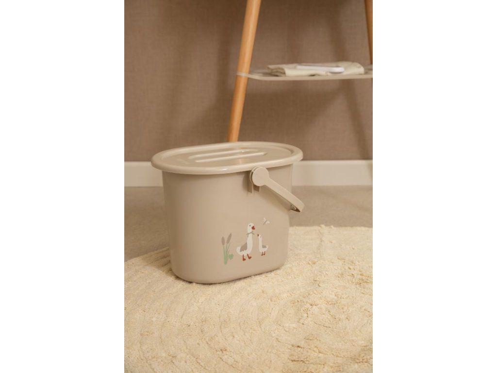 Mnohostranně použitelný kyblík na pleny. Kyblík na pleny od Bébé-jou je praktický mnohostranně použitelný výrobek. Do kyblíku na pleny dává mnoho maminek jen použité pleny, ale kyblík od Bébé-jou slouží také pro snadné plnění a vyprazdňování vaničky při koupání. K tomu účelu je opatřen integrovaným úchytem na spodní straně, který umožňuje snadnější nalití vody do vaničky. Obsah kyblíku je 14 litrů, právě tolik, kolik potřebují děti ke koupání ve vaničce Bébé-jou. Proto nikdy nebudete mít ve vaničce příliš vody. A když ji budete vypouštět do kyblíku, nepřeteče vám. Vaničku tak můžete mít umístěnu i mimo koupelnu, ve které často nebývá dost místa. Kyblík je k dispozici v mnoha barvách a provedeních, které jsou šetrné k životnímu prostředí, a je vybaven víkem.