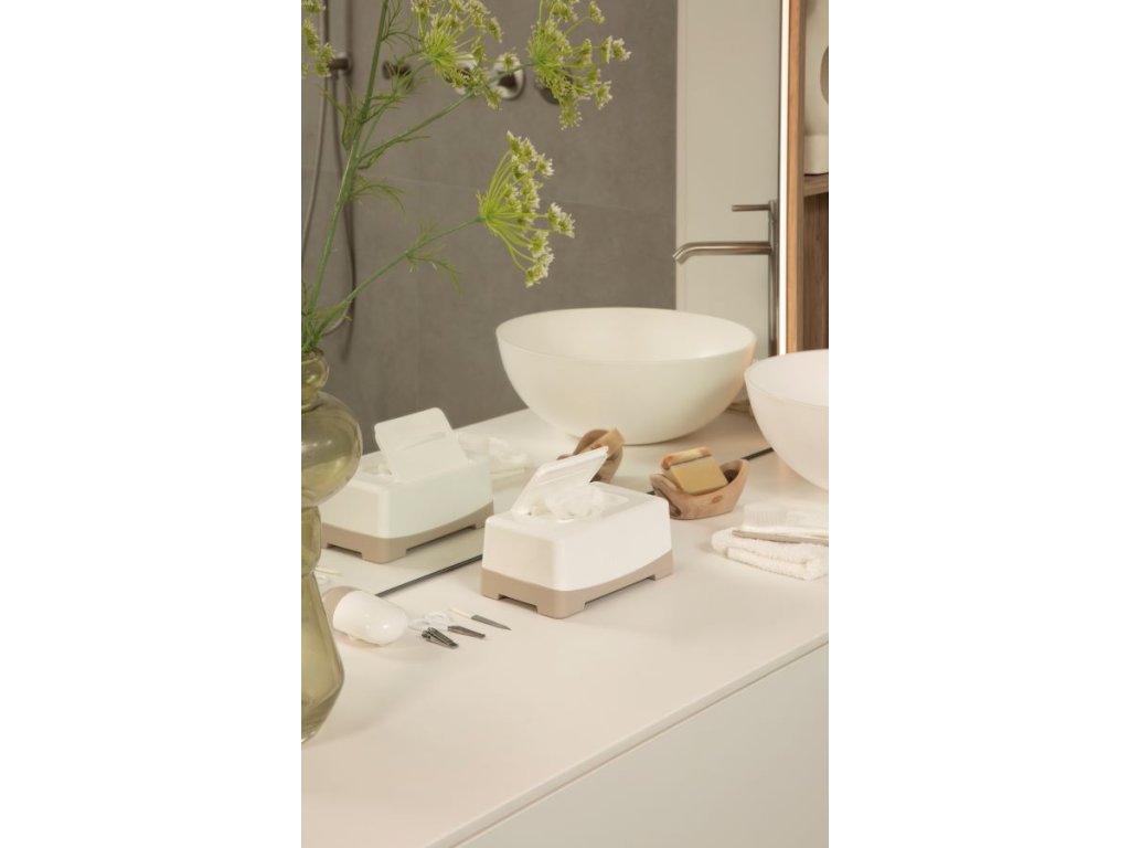 - Pro otření zadečku nesmí chybět box na vlhčené ubrousky. Využijete jej jako první věc ze sady při přebalování. Moderní skvěle vypadající box je lehce uzaviratelný - jen jedním prstem, aby se předešlo vysychání ubrousků. Jeho větší rozměr umožňuje použití ubrousků všech značek. Stačí jen otevřít kryt a vložit nové balení vlhčených ubrousků.