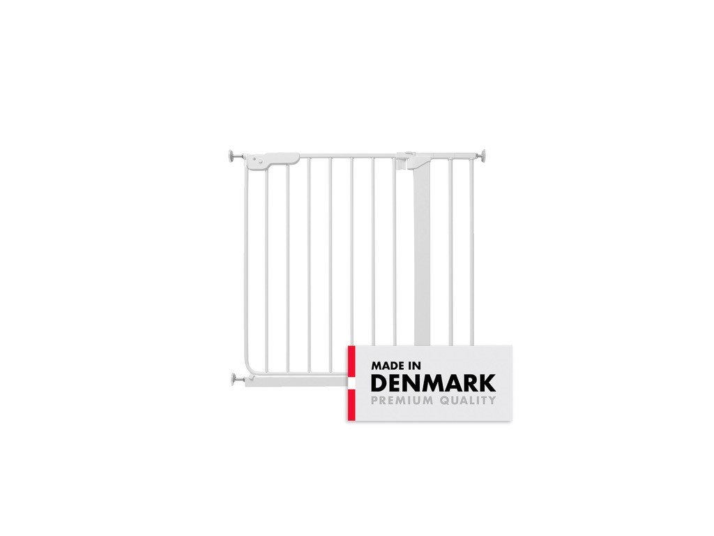 Výška 73 cm Vhodné pro děti do 24 měsíců Materiál: kovová zábrana Barva: bílá, bílé doplňky Vyrobeno v Dánsku, dle bezpečnostní normy EN 1930:2011 a chemické normy EN 1930. Hmotnost: 4,8 kg. Rozměry: 73 x 74 x 4 cm.