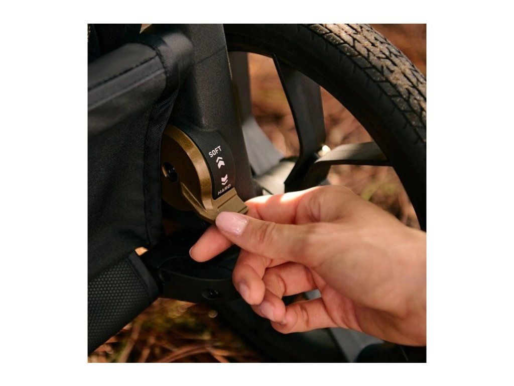 Patentované nezávisle nastavitelné odpružení každého kola. Děti rostou a cesty, kterými jedeme, jsou některé hladké, jiné hrbolaté. Proto vyvinula Inglesina nastavitelné odpružení. Pro miminko vážící 4-5 kg si odpružení přepnete na soft, a později, až už z něj bude batole vážící 12 kg, odpružení přepnete na hard. Kromě možnosti nastavit tuhost odpružení, zvětšila Inglesina jeho zdvih. Takže Aptica XT lépe překonává i větší nerovnosti cesty. Doporučení pro nastavení odpružení naleznete na konci přiloženého souboru.