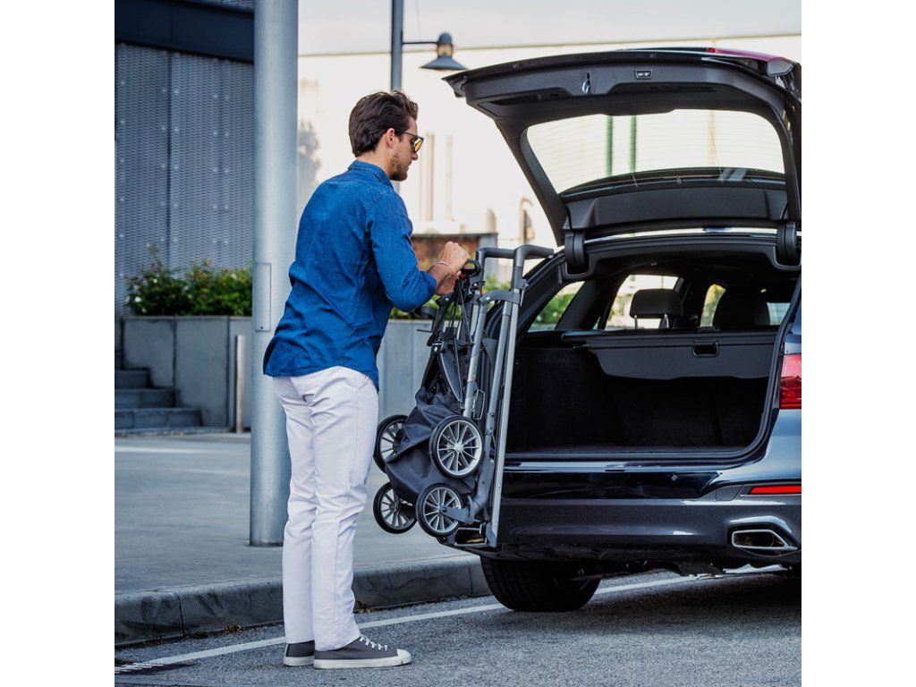 - Kompletně složený podvozek (i včetně sportovního sedadla) stojí sám.