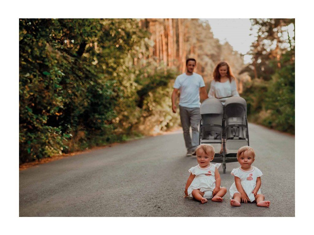 Lehký a kompaktní kočárek pro dvojčata v modré barvě, dobře jej využijete také pro věkově blízké sourozence. Vhodný již od narození.
