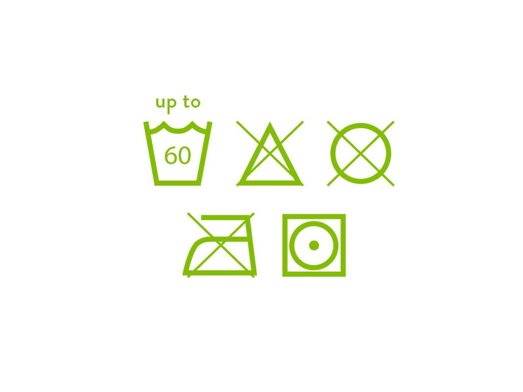 - Prostěradlo se dá snadno prát v pračce na 60°C a sušit v sušičce. Postupujte přitom podle pracích symbolů.