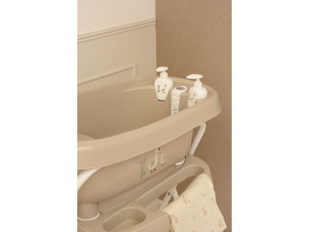 V kombinaci se stojanem Bébé-Jou je koupání snadnější a příjemnější. Bezpečné připojení na stojany Bébé-Jou pomocí Click-systému. Termovanička může být umístěna např. i na stole, jelikož její nožičky jsou opatřeny protiskluzovou vrstvou. Snadno se udržuje v čistotě. Při použití Bébé-jou stojanu na vaničku můžete vyprázdnit Bébé-jou termovaničku pomocí přiložené vypouštěcí hadice. Ovládání je skryto pod ukazatelem teploty. Stojany splňují veškeré bezpečnostní standardy. Potvrzuje to certifikát TÜV – renomovaného německého zkušebního ústavu. Termovanička je kombinovatelná s koupacím lehátkem a stojanem od Bébé-jou.