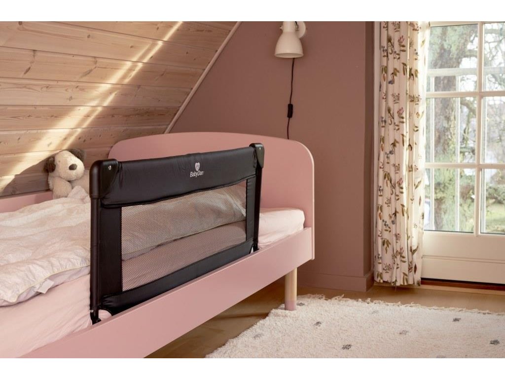 Když vaše dítě vyroste z dětské postýlky, je zapotřebí novou velkou postel zajistit tak, aby vaše dítě nebylo vystaveno nebezpečí, že spadne přes okraj. Zábrana se snadno instaluje a lze ji sklopit, aby vaše dítě mohlo snadněji vstávat a vstupovat z postele. Můžete ji složit do přepravní tašky, takže ji snadno vezmete s sebou na dovolenou. Je vhodná pro postele s lamelovými rošty a pevnými rošty a pro všechny postele kromě kolébek a horních paland. Doporučujeme používat pro děti od 18 měsíců do 5 let.